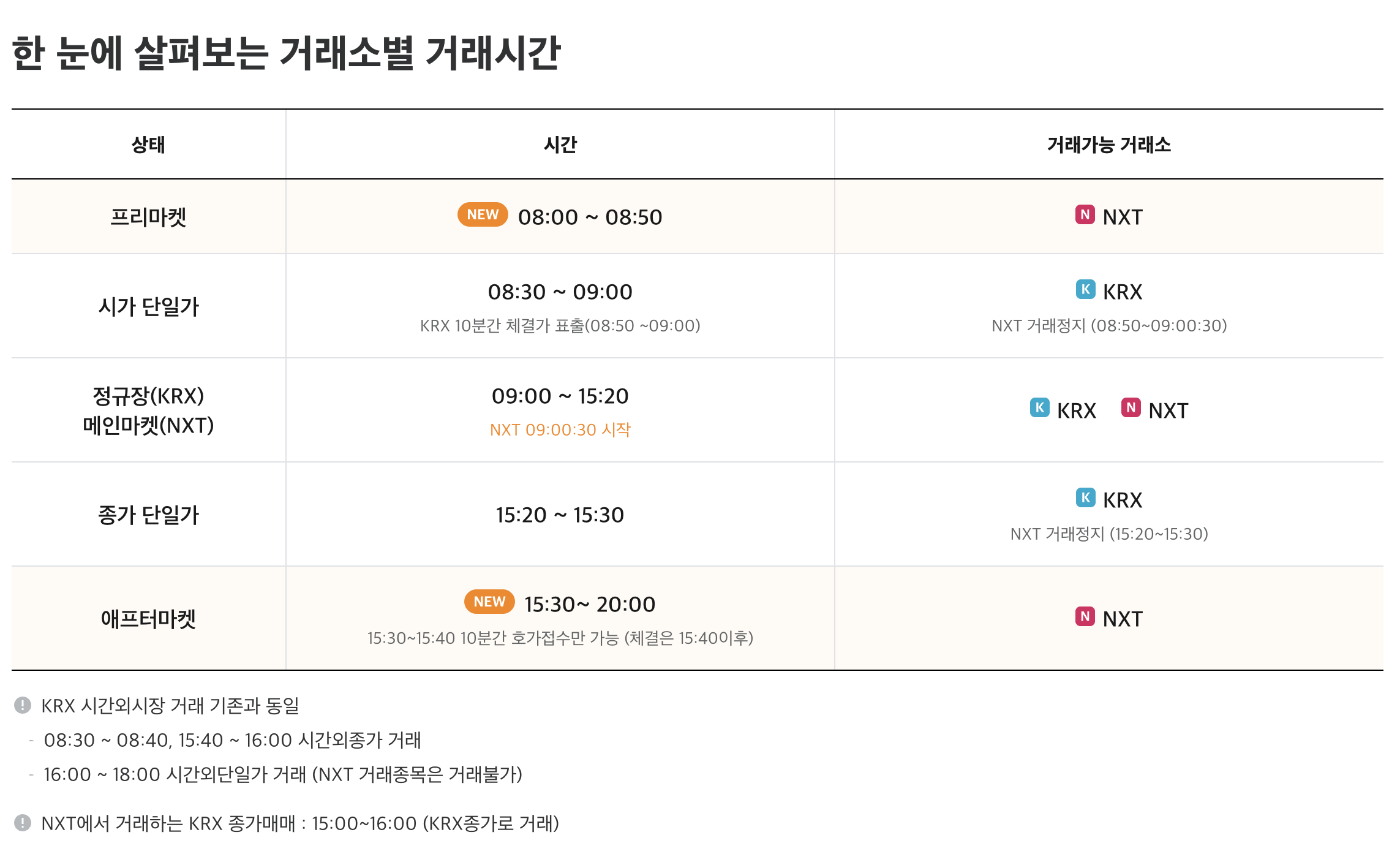- 주문 가능 시간 : 정규장 오전 9시 ~ 오후 3시 30분 (이후 KRX를 통한 거래 불가)